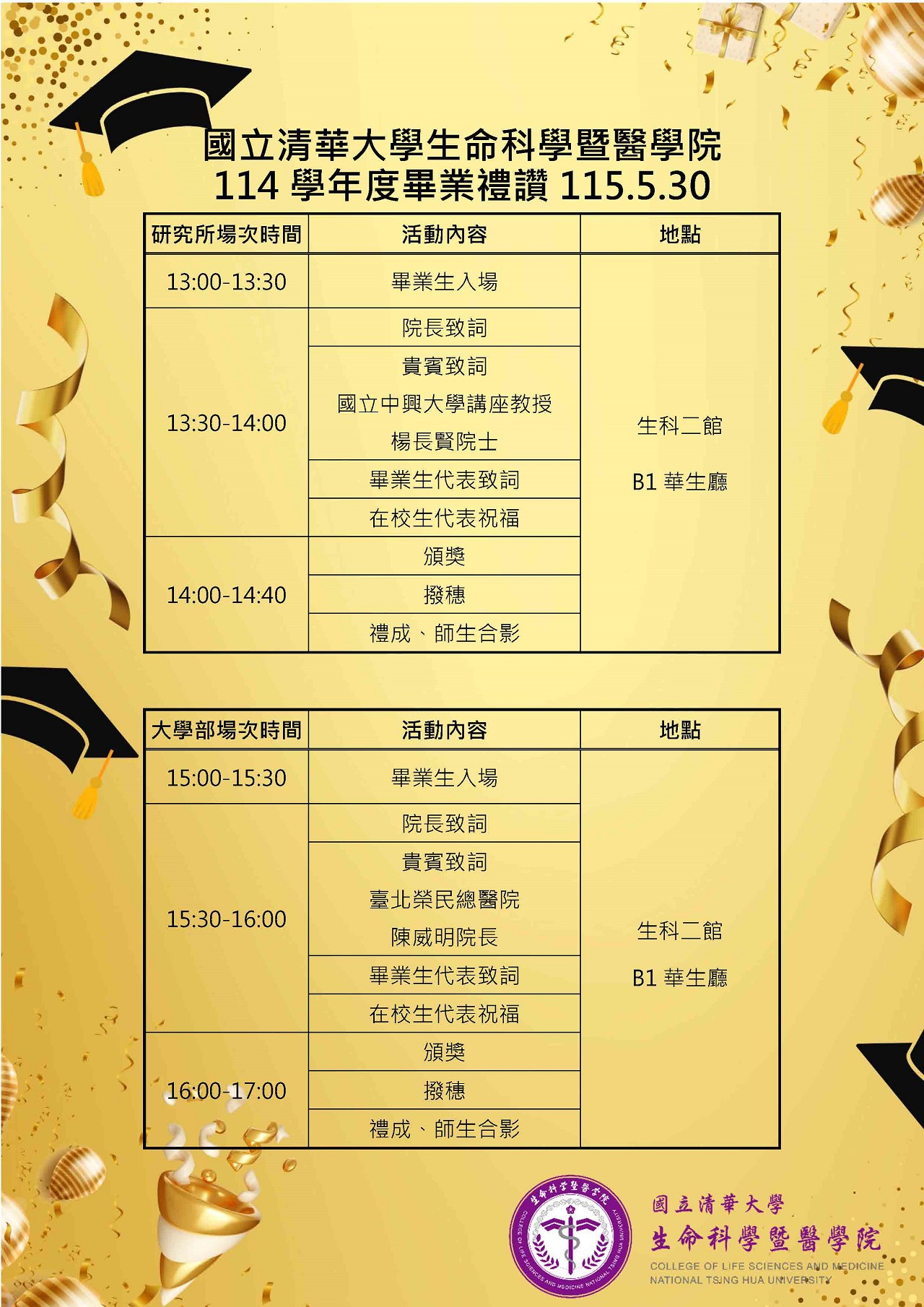 2026.5.30(六)敬邀參加國立清華大學生命科學暨醫學院114學年度畢業禮讚