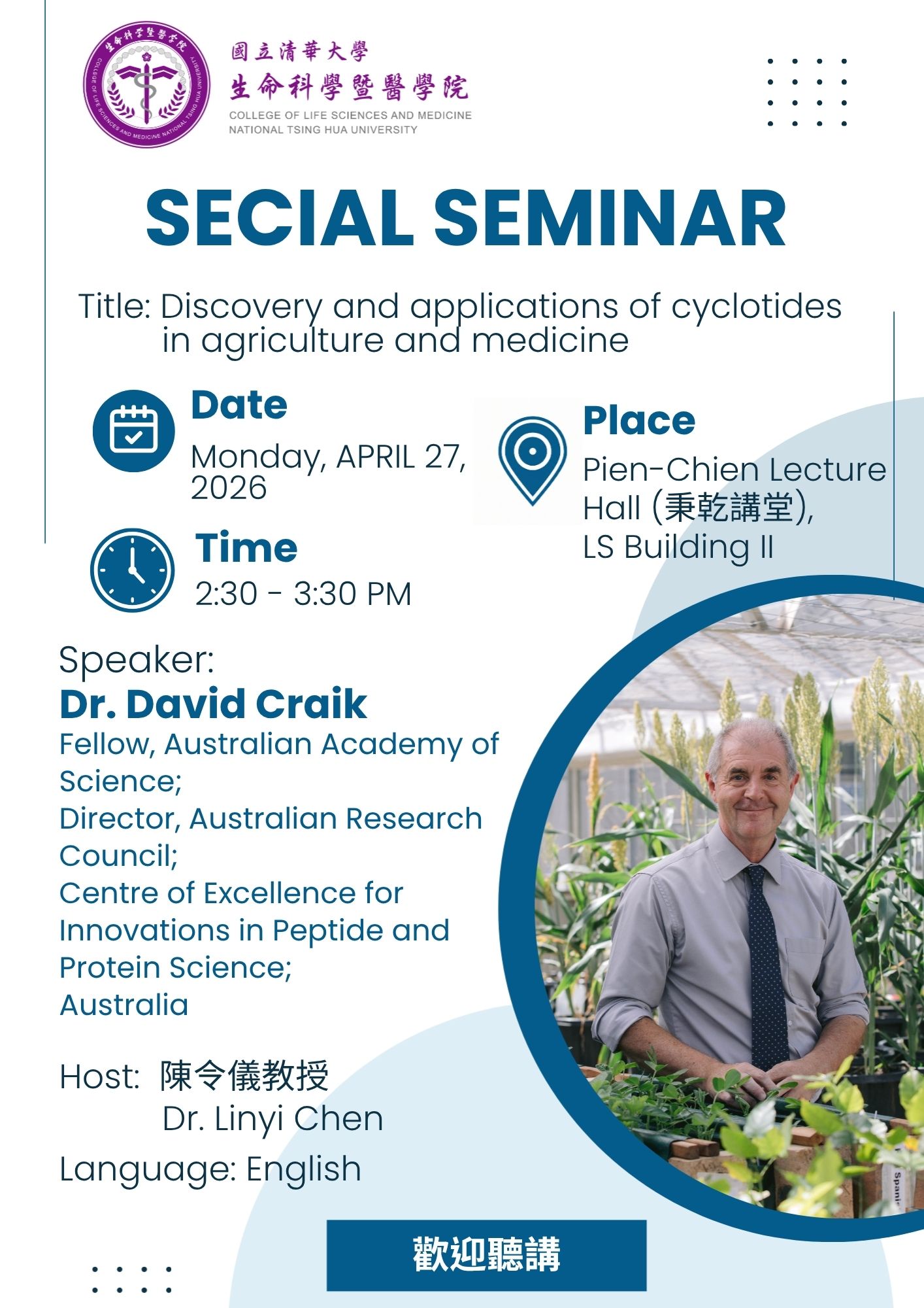 (特別演講)115.4.27 Dr. David J Craik, Discovery and applications of cyclotides in agriculture and medicine